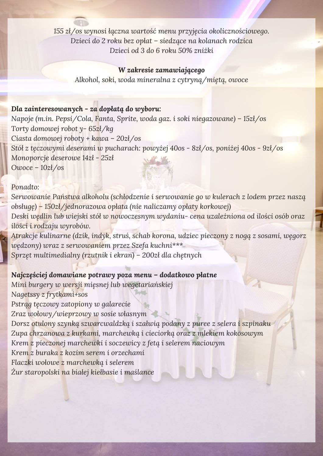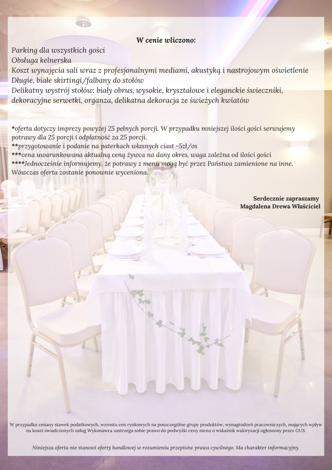 Jednocześnie informujemy o możliwości możliwość zmiany menu przez zamawiającego i wówczas zostanie ono ponownie wycenione.