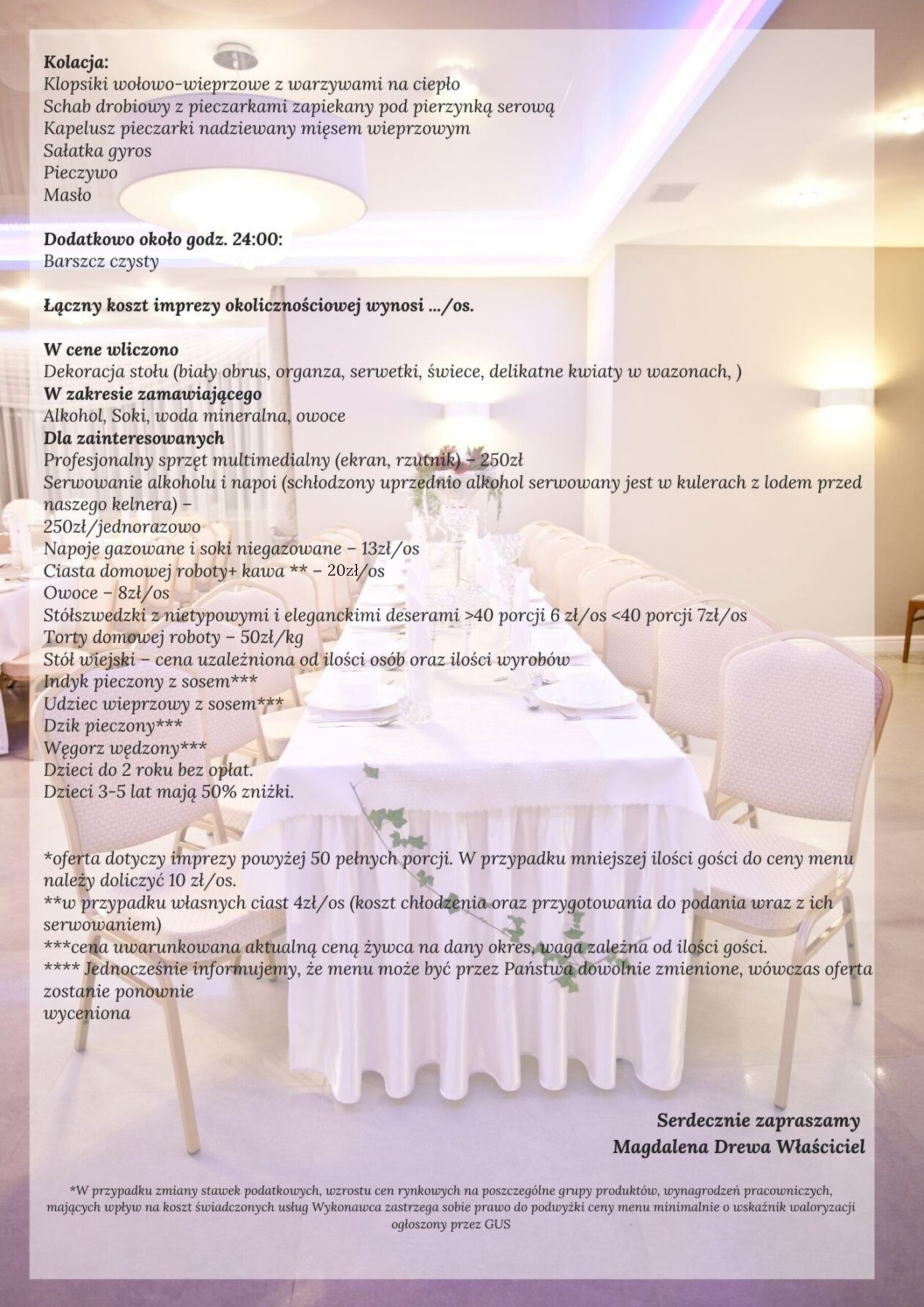 Jednocześnie informujemy o możliwości możliwość zmiany menu przez zamawiającego i wówczas zostanie ono ponownie wycenione.